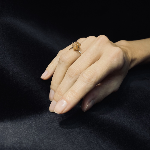 Anello realizzato a mano in argento 925 con pietra del sole grezza (feldspato).